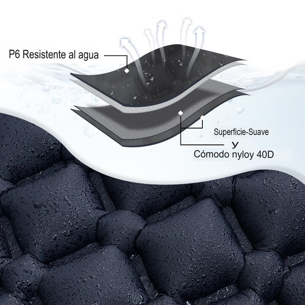 Este colchón inflable te garantiza un descanso seco y cómodo bajo la lluvia o el viento, gracias a su diseño impermeable.
