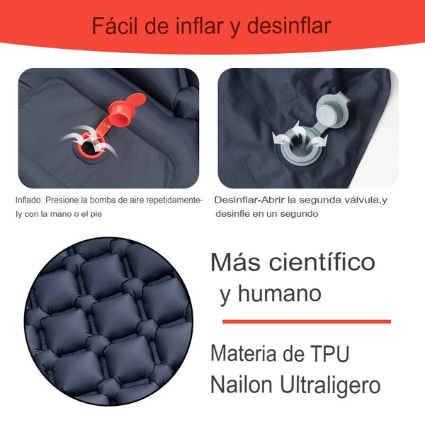 Ligero y fácil de inflar, te permite disfrutar más tiempo explorando y menos tiempo preparando tu campamento.